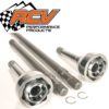 Súprava RCV Performance Ultimate CV Axle jednoducho nahradí hriadele náprav vášho slabého samuraja novým vysoko pevným 26 drážkovaným dizajnom. Továrenské nápravy boli navrhnuté so slabými 22 drážkami v diferenciáli, čo vytváralo spoločný bod zlyhania. Táto súprava náprav vylepšuje 22 drážok na robustné nastavenie 26 drážok, čo je rovnaké drážkovanie, aké sa nachádza na zadnom diferenciáli. Aby bolo možné prispôsobiť sa novému 26 drážkovanému ozubeniu, je potrebné vymeniť predné bočné ozubené koleso diferenciálu za 26 ozubené koleso zadného bočného diferenciálu. Testy dokazujú, že osy Ultimate CV sú dvakrát pevnejšie ako hriadele OEM a sú rovnako pevné v priamom uhle, ako aj pri extrémnych uhloch. Aj keď máte veľké pneumatiky a veľký výkon, nemusíte sa obávať. Ultimate CV Axles sú nenáročné na údržbu a fungujú hladko, ktoré môžete cítiť – či už v teréne alebo na ulici.